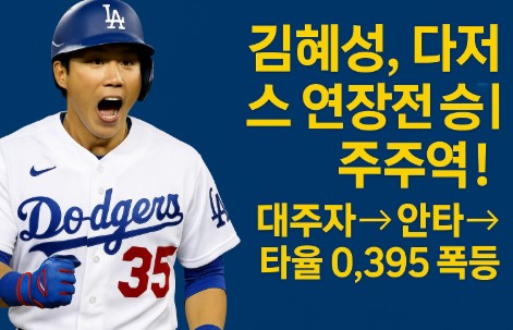 이번 안타로 김혜성은 시즌 타율을 0.378에서 0.395까지 끌어올렸습니다. 최근 4경기 연속 무안타 침묵을 깨며, 다저스 팬들에게 희망을 안긴 경기였습니다.